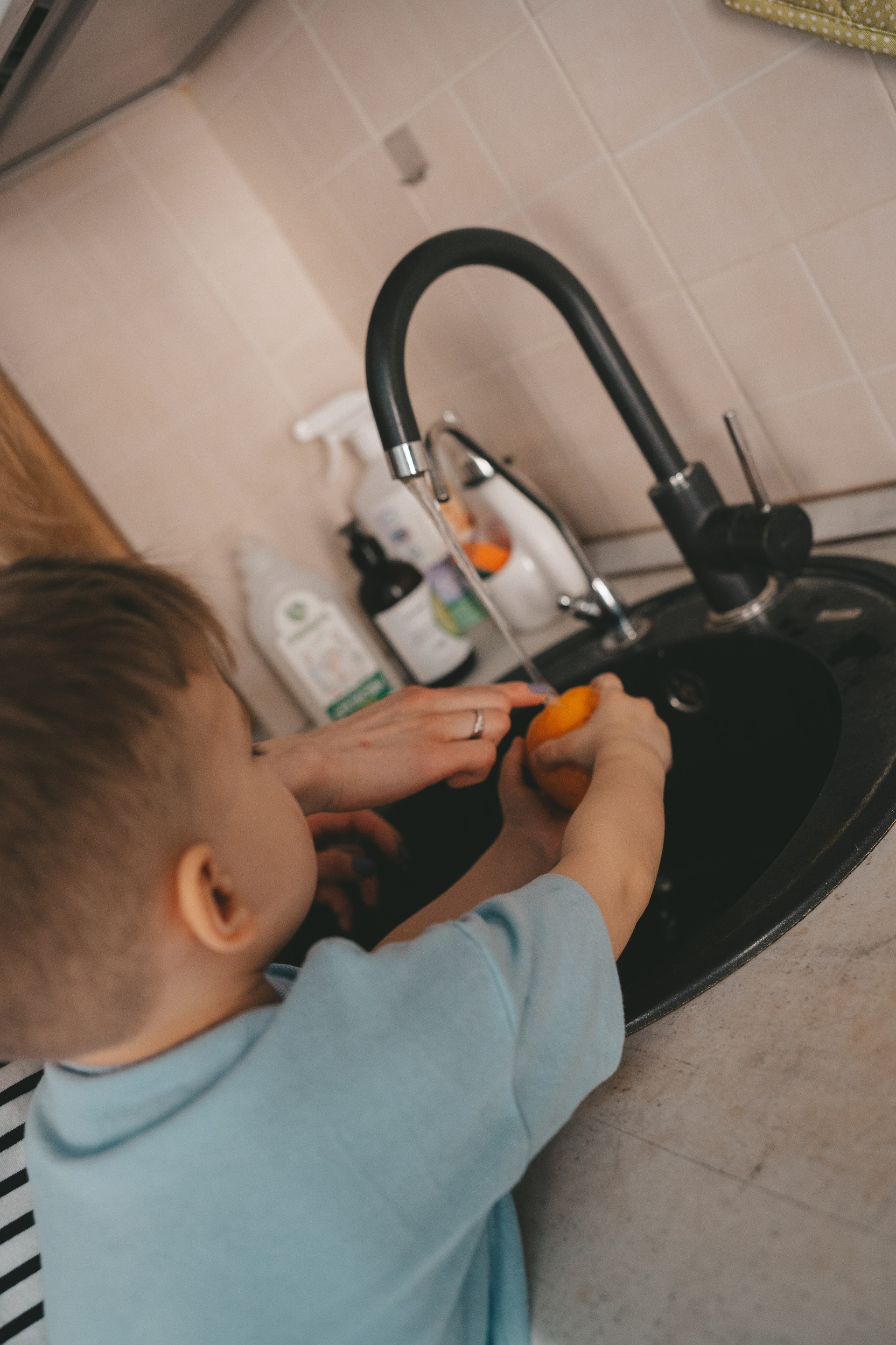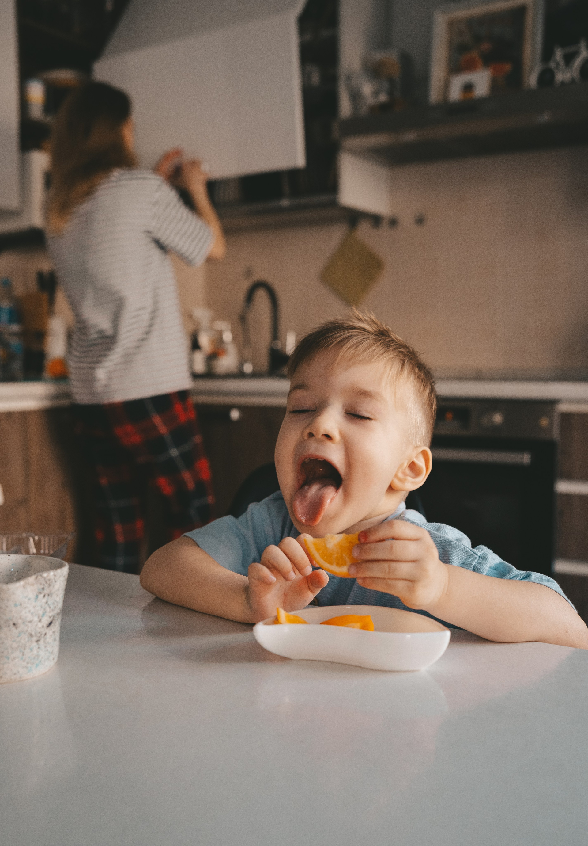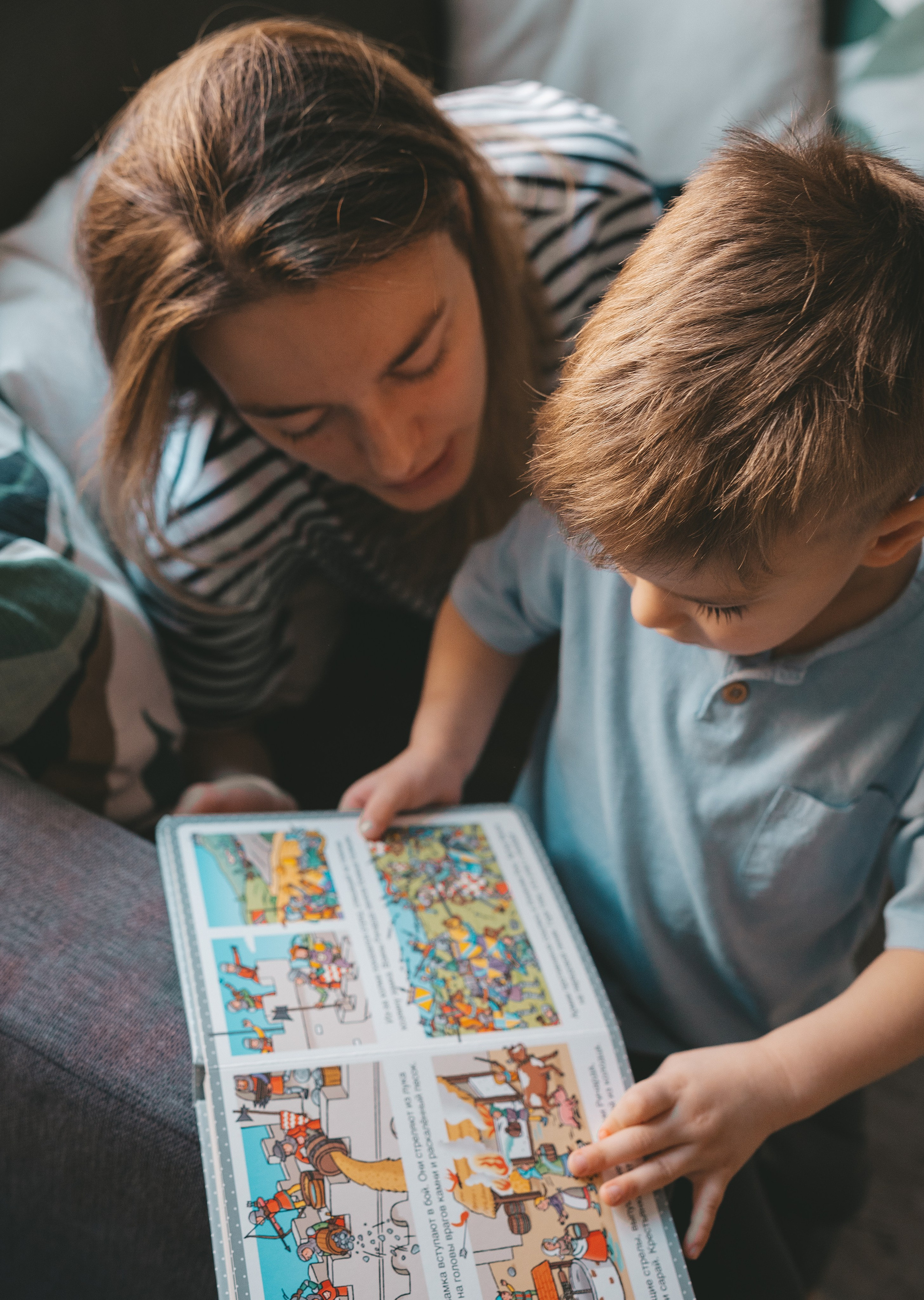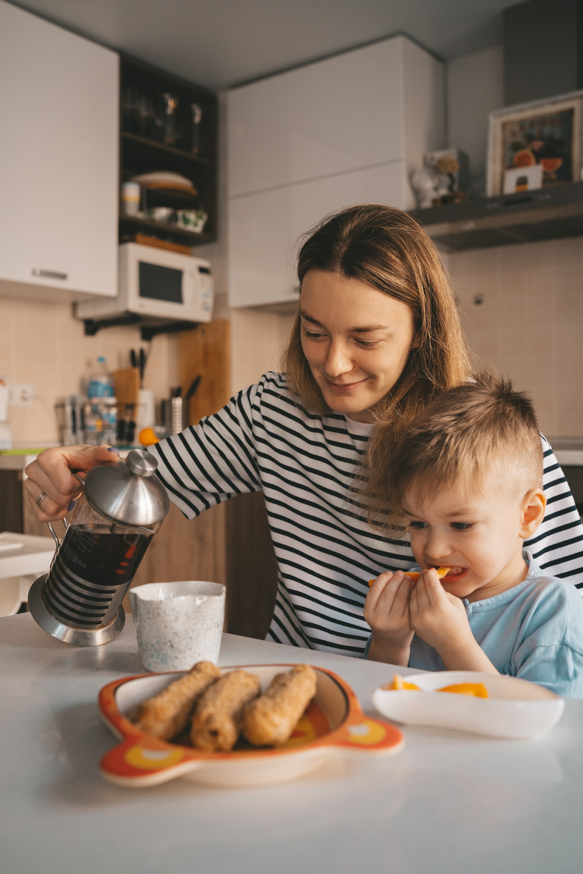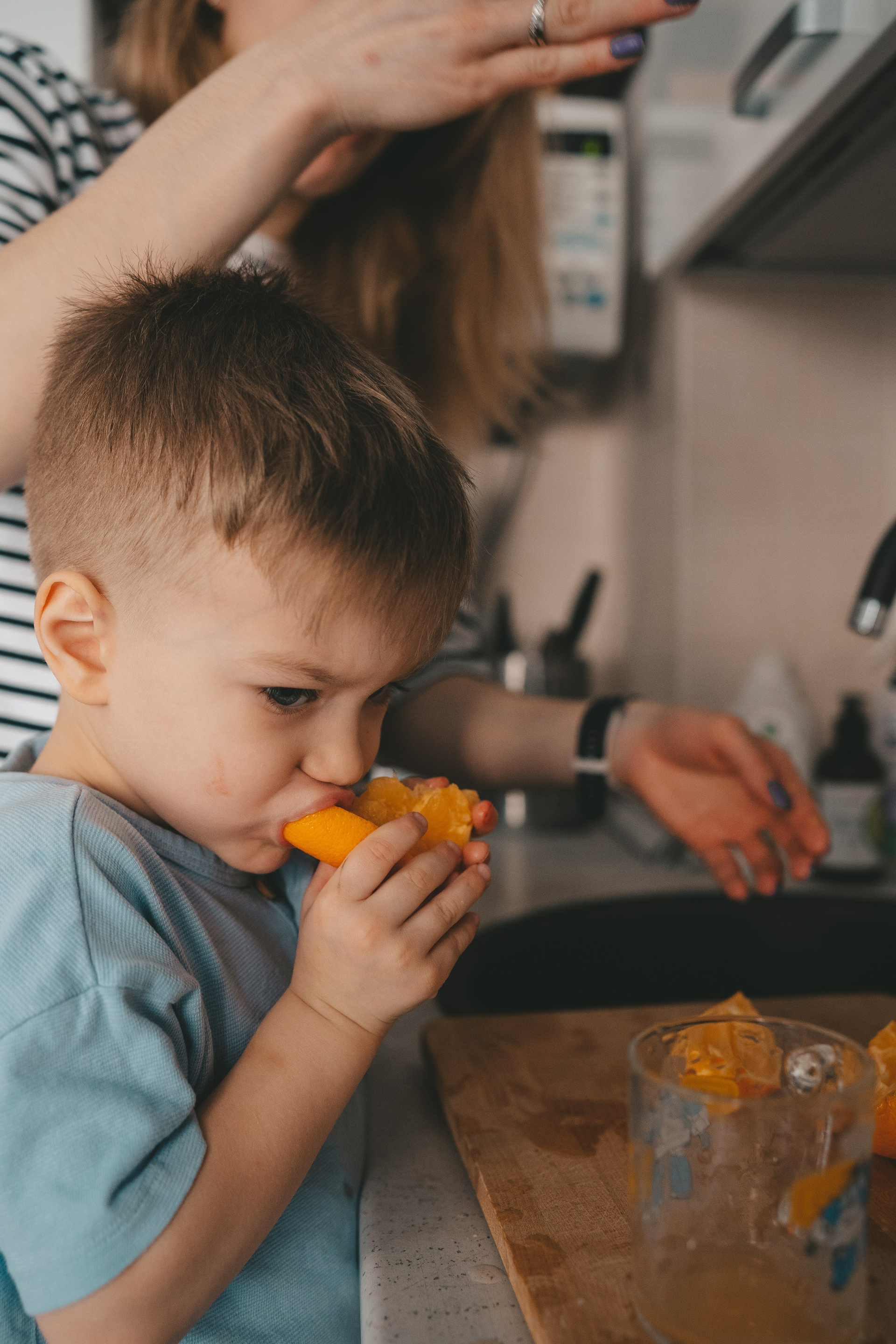 Семейная съемка в поле с ребенком: мама и сын